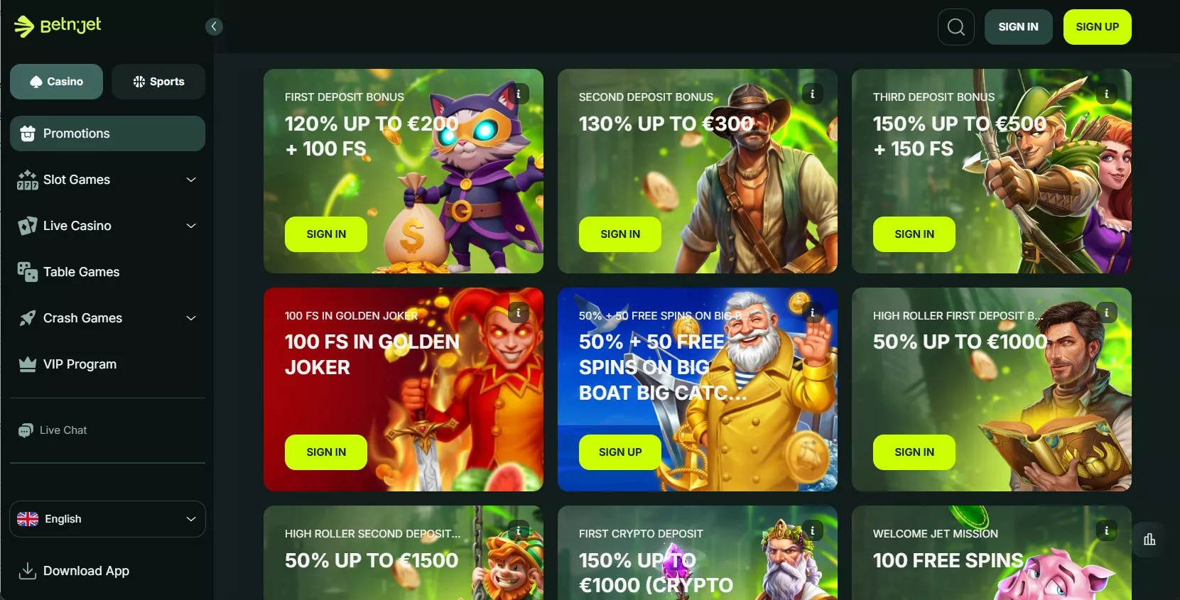 Het Betnjet casino biedt ook seizoensgebonden acties van providers zoals BGaming en Pragmatic Play met verlaagde inzetvereisten en verhoogde maximale uitbetalingen. Strange Spins en Jet missies stellen spelers in staat om beloningen te verzamelen voor een reeks stortingen gedurende de week, wat bijzonder voordelig is voor actieve spelers. Voor vaste gebruikers is er een meerlagig VIP-programma met persoonlijke bonussen, versnelde uitbetalingen en speciale aanbiedingen van de manager.