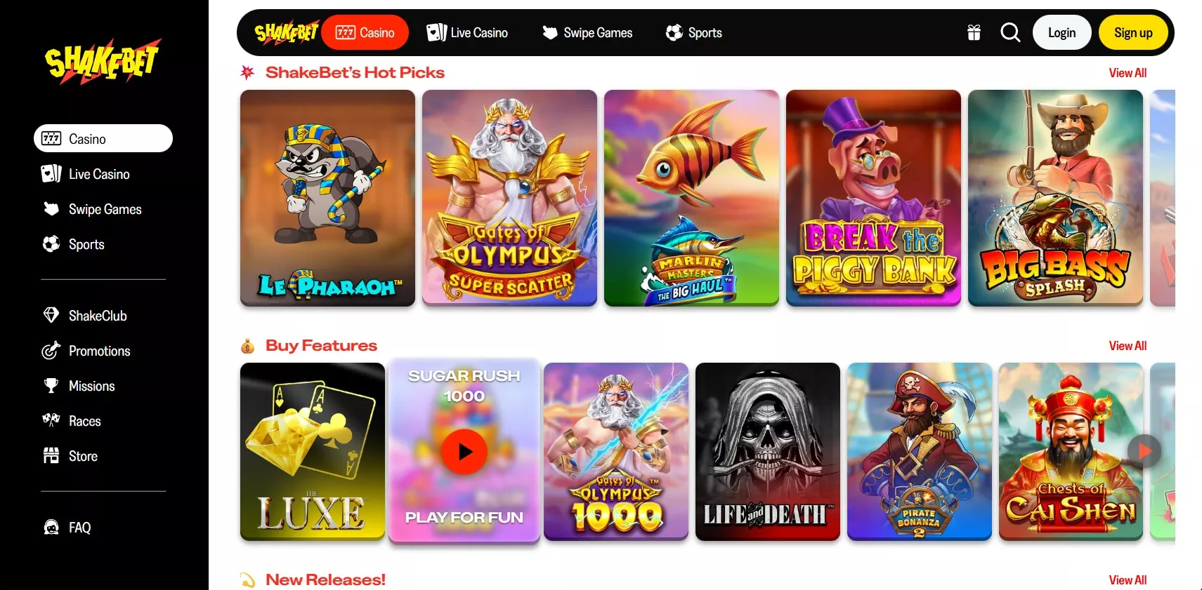 De bibliotheek van Shakebet casino online spel omvat meer dan 4.000 gokkast en andere games van toonaangevende providers in de industrie. De catalogus bevat slots, live tafels met echte dealers, klassieke kaartspellen en game shows. De navigatie is gebaseerd op een swipe-systeem, waardoor u snel tussen games kunt schakelen zonder laadvertragingen.
