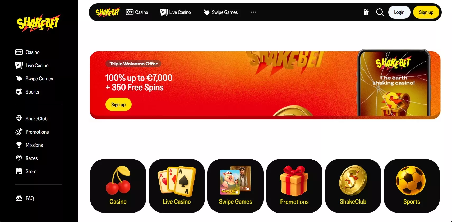Na voltooide registreer bij Shakebet casino online klikt u op de knop “Login” in de rechterbovenhoek van de hoofdpagina en voert u het e-mailadres en wachtwoord in uit de registratie. Als u uw gegevens bent vergeten, gebruik dan de wachtwoordherstelfunctie via e-mail.